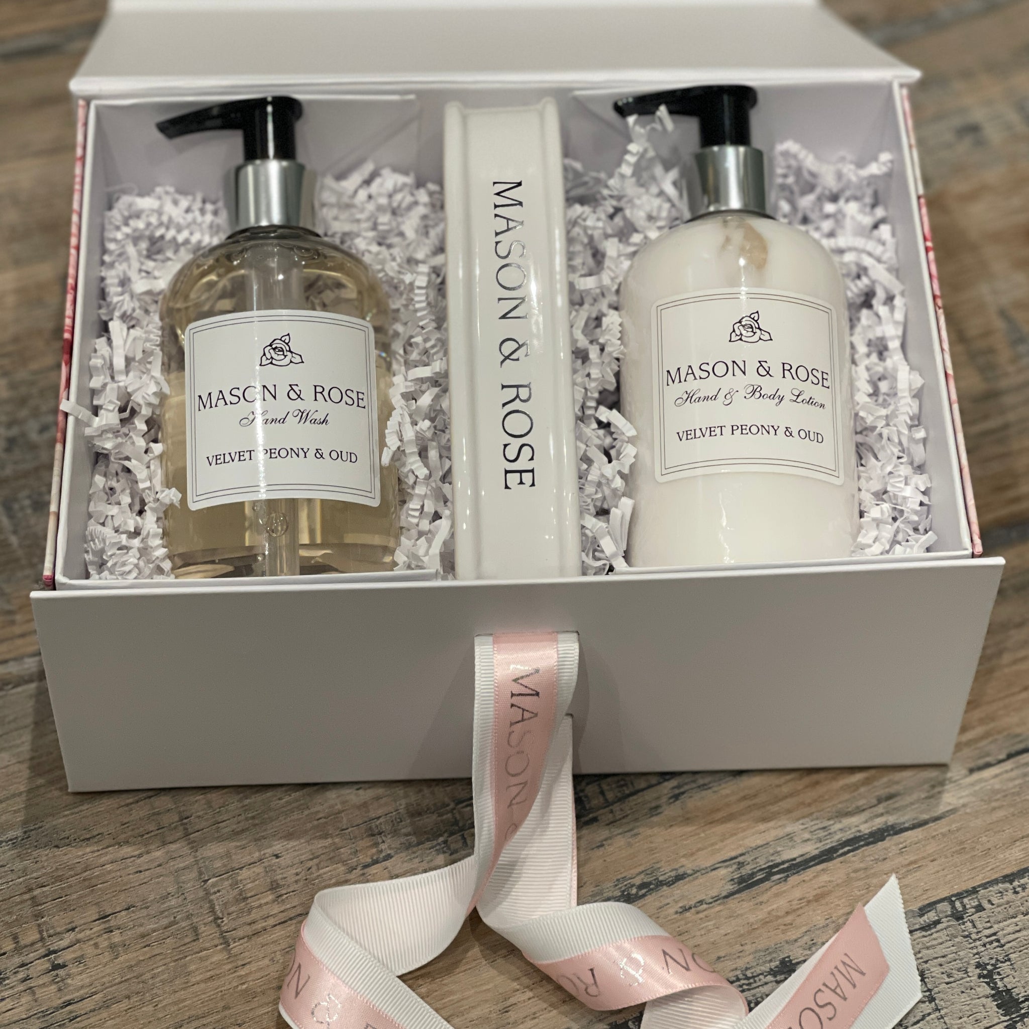 Our hand and body ceramic set is presented in a beautiful black ribboned magnetic box. Available in eleven fragrances.
